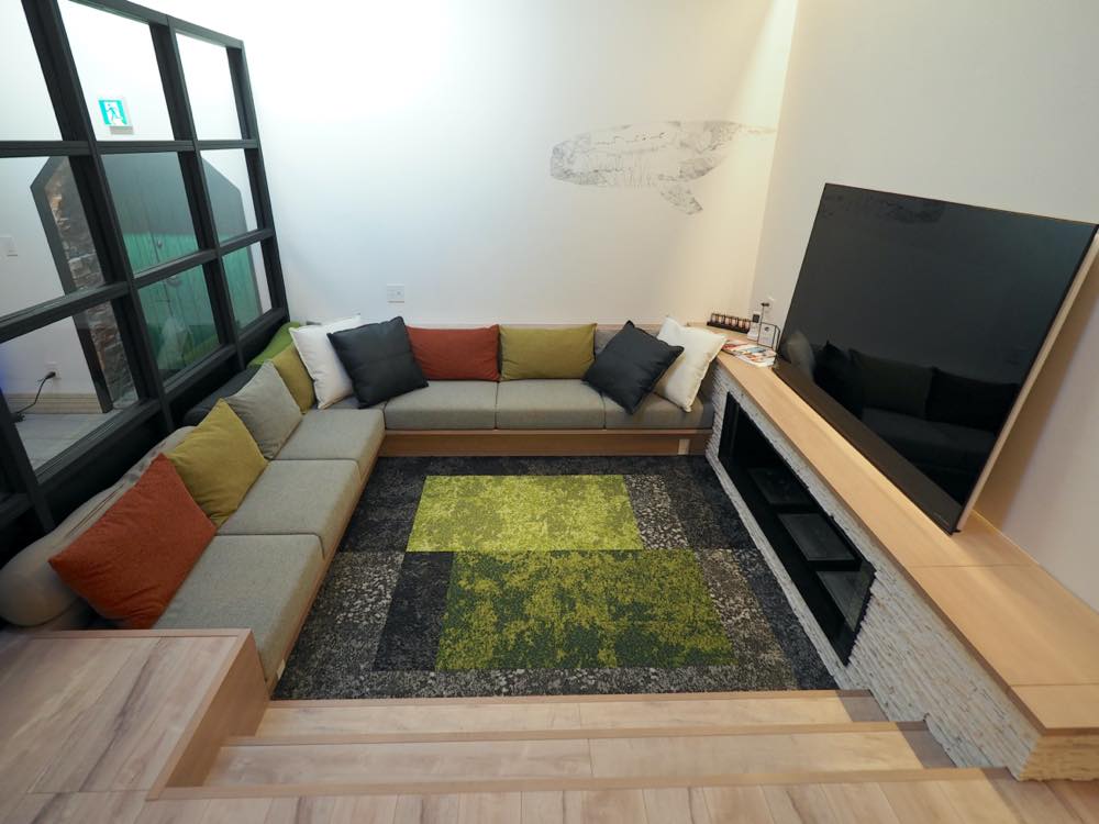 Comfortable sofa enough to fit more than 6 people, bio ethanol fireplace, 55 inch SONY smart TV