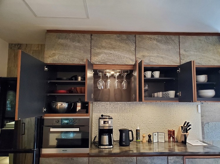 Our kitchen is fully utilized for small cooking class, IH cooking range with 3 heaters, microwave range oven, dish washer, dishes, IH rice cooker, salt & pepper, etc.